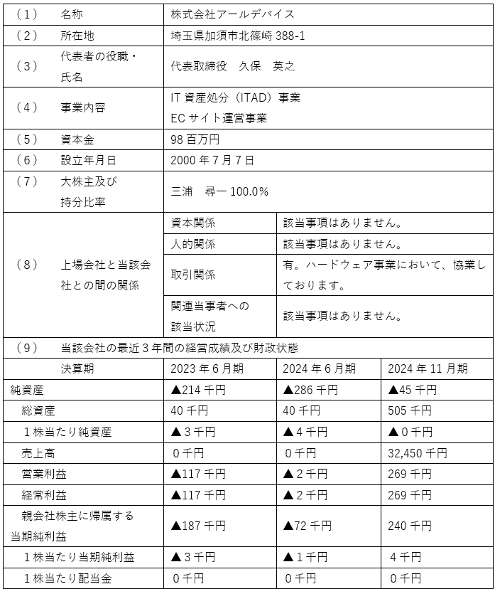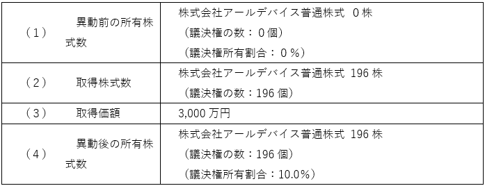 ※本株式取得に関連し、アールデバイス/当社において新株発行・自己株式処分等は行いません。